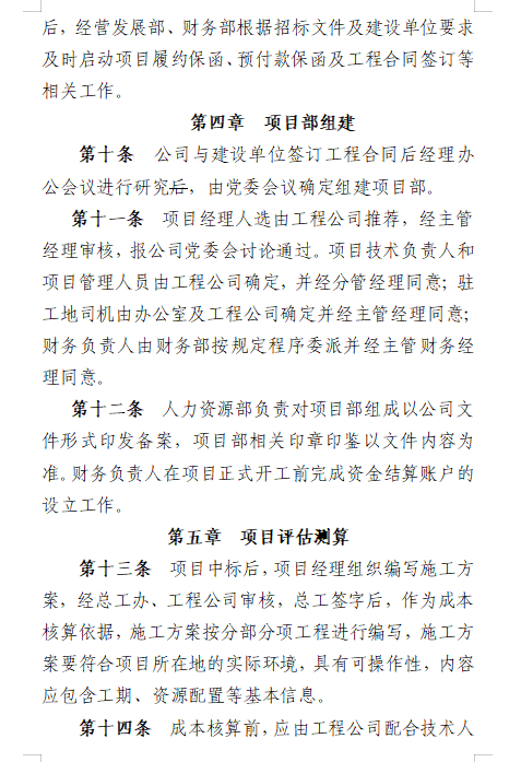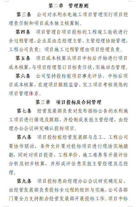 根据公司目前的生产经营状况,针对每个施工项目的不同特点,自项目投标到工程竣工验收进行系统性和专业性的全过程管理,采取投标前项目事先评估、中标后项目成本核算、在建项目跟踪监督、完工项目考核奖惩的项目管理体系。公司党委组织相关职能部门组成检查组,对所有在建项目进行每半年全覆盖检查,针对检查过程中发现的问题提出整改意见,及时发现问题,及时解决问题。通过制定施工项目管理办法,进一步规范公司项目管理、明确业务流程、提高管理效率、提升经营收益,建立适应公司可持续发展的水利水电施工业务的经营管理新模式。