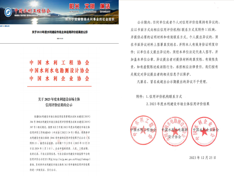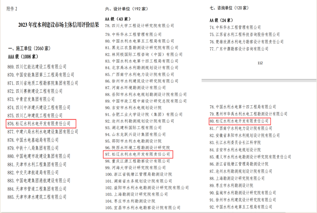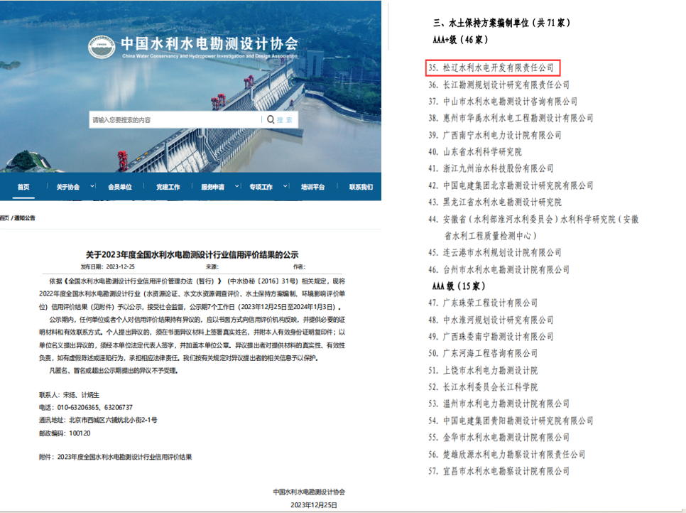 同时,全国水利建设市场主体信用评价工作再添喜讯!经中国水利工程协会核准,公司施工类信用评价取得AAA级。经中国水利水电勘测设计协会核准,公司水土保持方案编制类信用评价取得AAA+级、设计类信用评价取得AA级、咨询类信用评价取得AA级。在总体保持了各领域原有信用等级的基础上,水土保持方案编制类由原来的AAA级荣升AAA+级,是公司在信用评价工作中取得的新突破。